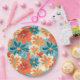 Colourful Retro Groovy Floral Hippie Pattern Paper Plate
