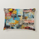 Colourful retro junk travel grunge style collage accent pillow