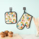 Colourful Retro Mid-Century Geometric Pattern Oven Mitt & Pot Holder Set