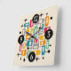 Colourful Retro Mid Century Modern Atomic Abstract Square Wall Clock