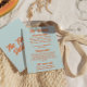 Simple and stylish retro colourful wedding guest info details. With funky sky blue background and pale orange text layout. All the info are customizable as website, transportation, accommodation . Grab it along with other products from this classy hand made retro wedding suite.