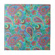 Cool retro colourful paisley pattern. Blue-green with red and yellow accents.