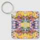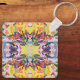 Keychain key ring and key fob holder printed with a Colourful Retro Psychedelic Kaleidoscope Abstract art design four part mirrored image repeating pattern graphic artistic illustration by TheFabricSeal print on demand shop at Zazzle.com #ZazzleMade ©️Original. https://www.zazzle.com/store/thefabricseal