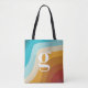 Colourful Retro Rainbow Abstract Waves Monogram Tote Bag