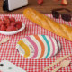Colourful retro style curves paper plate