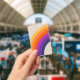 Colourful retro style rainbow art badge