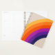 Abstract illustration of retro style rainbow design in yellow, purple, blue, and orange colours on beige background