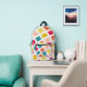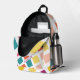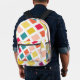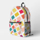 Abstract retro style illustration of colourful (yellow, blue, orange, purple, pink, beige, turquoise) curves and squares decoration. It is easy to customize it by changing the names/date/text etc.