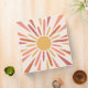 Abstract retro style sunshine illustration with pink, brown, orange, purple, and yellow sun rays decoration on pastel pink background for summer lovers.