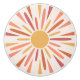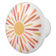 Abstract retro style sunshine illustration with pink, brown, orange, purple, and yellow sun rays decoration on pastel pink background for summer lovers.
