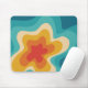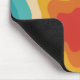 Abstract illustration of colourful retro style swirl design in blue, turquoise, beige, orange, red and mustard colours