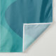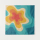 Abstract illustration of colourful retro style swirl design in blue, turquoise, beige, orange, red and mustard colours
