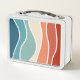 Abstract retro style illustration of colourful (red, blue, orange, navy blue, beige, turquoise) waves decoration on white background. You can add your name/monogram to personalize the item.
