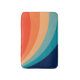 Abstract illustration of colourful (red, orange, blue, turquoise, navy blue) sun rays with curvy geometric stripes decoration