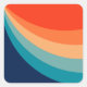 Abstract illustration of colourful (red, orange, blue, turquoise, navy blue) sun rays with curvy geometric stripes decoration