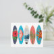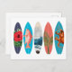 A colourful retro themed surfboard design featuring different types surfboard art. Vintage illustrations of tropical fish, beach, hibiscus flowers and palm trees create an eclectic mix of colourful surfboards. Ideal surfboard design for anyone who loves surfing, the beach, colourful beach themed gifts and décor.
