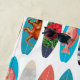 A colourful retro themed surfboard pattern design featuring different types surfboard art. Vintage illustrations of tropical fish, beach, hibiscus flowers and palm trees create an eclectic mix of colourful surfboards. Ideal surfboard design for anyone who loves surfing, the beach, colourful beach themed gifts and décor.