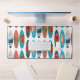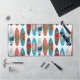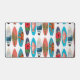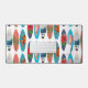 A colourful retro themed surfboard pattern design featuring different types surfboard art. Vintage illustrations of tropical fish, beach, hibiscus flowers and palm trees create an eclectic mix of colourful surfboards. Ideal surfboard design for anyone who loves surfing, the beach, colourful beach themed gifts and décor.