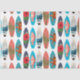 A colourful retro themed surfboard pattern design featuring different types surfboard art. Vintage illustrations of tropical fish, beach, hibiscus flowers and palm trees create an eclectic mix of colourful surfboards. Ideal surfboard design for anyone who loves surfing, the beach, colourful beach themed gifts and décor.