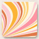 Colourful retro vibes abstract illustration with wavy pink, purple, brown, beige, yellow and orange wavy sun rays on pastel background