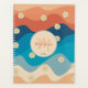Colourful Retro Waves & Daisies Pattern Monogram Planner