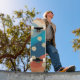 Colourful Retro Waves & Daisies Pattern Skateboard