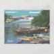Colourful River Boats Negril Jamaica Postcard. Photograph. Grouping of working longboats moored along the shore with cresting waves in the background. Red, Yellow , green painted Fishing boats on the Negril River. Copyrighted JH alleyshirts all rights reserved. No reproductions of any kind without persmission.