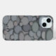 This phone case features a background of beautiful round stones in multiple muted colours. The art looks like the little stones in a stream. They are mostly grey with hints of pink, blue, green, and gold. The template also includes a text field for adding your initials/monogram in an elegant open serif font in light grey. With a delicate texture and muted colours, this design is a perfect case for someone wanting a natural, elegant covering for their phone.