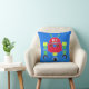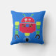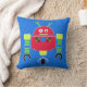 Colourful boy's bedroom throw pillow done in royal blue, with cartoon graphics of a large red robot. Customize this fun pillow to add your own text. Matching bedroom and bathroom decor is available.