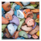 Photograph of a crate full of variously coloured rock attachments for an indoor climbing wall