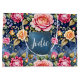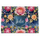 The colours and layering in this pink and gold roses design have a fantastical effect, floating over deepening layers of blue leaves and shadow. For extra delight, tiny sprays of blue and pink single petal posies and leaves are interspersed in the rose garlands. Seamless image. Personalize option layer.
