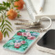 Colourful roses and flowers. Pink and red roses, light blue-green background with white and blue accents.