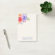 Personalized wedding post-it notes with a fanciful floral bouquet with watercolor roses. Stylish, whimsical and creative. A bundle of roses in pink, purple and yellow. With lots of sprigs and leaves in green, pink, purple and blue. Background is an off-white champagne colour.