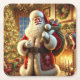 Colourful Santa Claus Resting Before Continuing on Square Paper Coaster