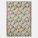 A colourful scalloped pattern throw blanket in various colours including blue, teal, red, black, light green, brown, and white, perfect for the living room, den, bedroom, or family cabin!
