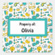 A Colourful Fun school pattern featuring school supplies and Space, Robots, lab equipment in fun bold colours. Perfect for personalized labels for books, journals, and labelling school supplies.