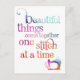 Beautiful things come together one stitch at a time. Whether you love to sew or quilt, this fabulous saying is perfect for all occasions. Pretty multicolored watercolor typography design with a sewing machine in the corner.