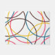 Cool, unique, trendy, urban abstract background pattern made with circle geometric shapes in blue, pink, yellow and black colours. Colourful, playful, trendy and modern vector art graphic design artwork.