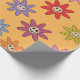 Colourful Smiling Flowers Pattern on Orange Wrapping Paper
