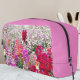Zippered dopp kit toiletry bag that features the photo image of a summer garden with colourful Snapdragons and little, pink and white Nicotiana flowers, with solid pink top and side panels. A lovely, floral design! Perfect accessory bag for your toiletries for on-the-go travel!