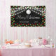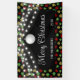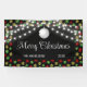 Elegant Christmas banner features string lights and Christmas ball on a colourful snowflakes black background with vibrant typography "Merry Christmas". Personalize it with your name.