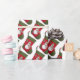 A photograph of a red and green stocking with an adorable snowman dressed in a seasonal plaid scarf and hat set over a white background design is featured on this gift wrap roll. Select a roll length for you gift wrapping needs.