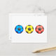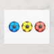 Illustration of a blue, yellow and red soccer ball standing in a row.