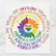 Colourful word art design gives a shout out to a variety of social justice movements including Black Lives Matter, Science is Real, Love is Love, Women's Rights are Human Rights, and more. Centre of graphic is rainbow flower and heart.