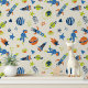 Colourful Space Astronaut Modern Kids Pattern Wallpaper