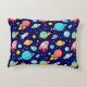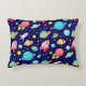 A vibrant seamless pattern showcasing cartoon rockets, planets, stars, and galaxies against a dark background.