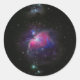 Look to the heavens at this colourful space galaxy! Vibrant colours of red, purple, and blue. The galaxy is surrounded by gas, dust, and millions of bright stars in an infinite black space.