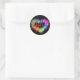 Colourful sparking glitter heart love script classic round sticker