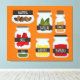 Colourful spice jars with various spices like tumeric, paprika, bay leaves and basil against a colourful background. Perfect for a home cook or budding chef or for kitchen decoration ideas.