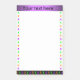 These notes have an eye-catching design of spiders, with a purple band across the top for you to personalize with your own text or your name. The spiders are in bright shades of orange, purple and green, creeping along three sides of the post-its.